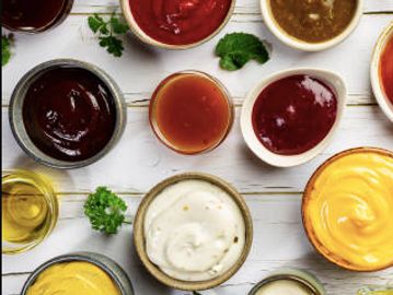 Ketchup, Mustard, Ranch, BBQ, House, Buffalo, Marinara, Tarter, Honey Mustard, and Mayo.