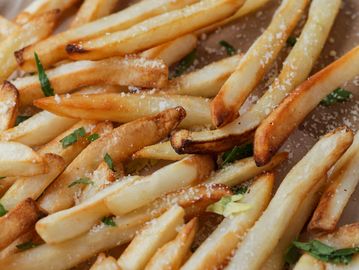 12 oz of fries, lightly salted with your choice of sauce.